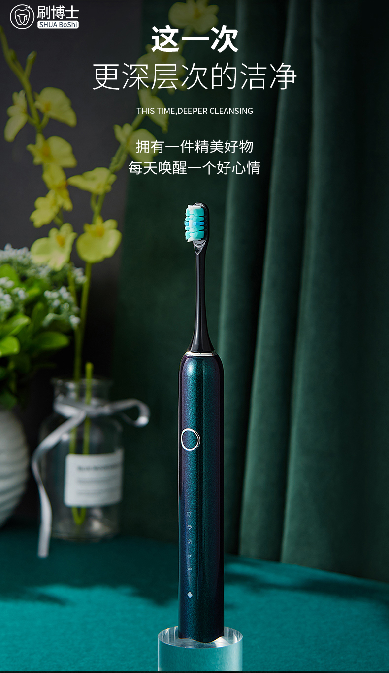 刷博士【S300智能聲波電動牙刷】是一款集潔齒、護理及體驗煥然一新于一身的多功能聲波電動牙刷,采用一鍵式的簡約設(shè)計,5檔清潔模式,隨心掌控;此外,植入了模式記憶功能,牢牢記住你的刷牙習慣,下次刷牙,無需費時再次選擇;強勁的續(xù)航功能,一年僅充1次電;高顏值的顏色設(shè)計,皓月白、睿智黑、深邃藍等多種顏色選擇,遇上不同風格的你。
