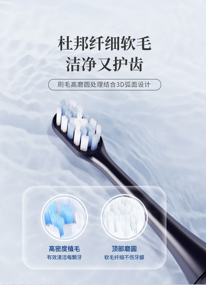 4、杜邦纖細(xì)軟毛,配上3D弧面設(shè)計(jì),潔凈又護(hù)齒