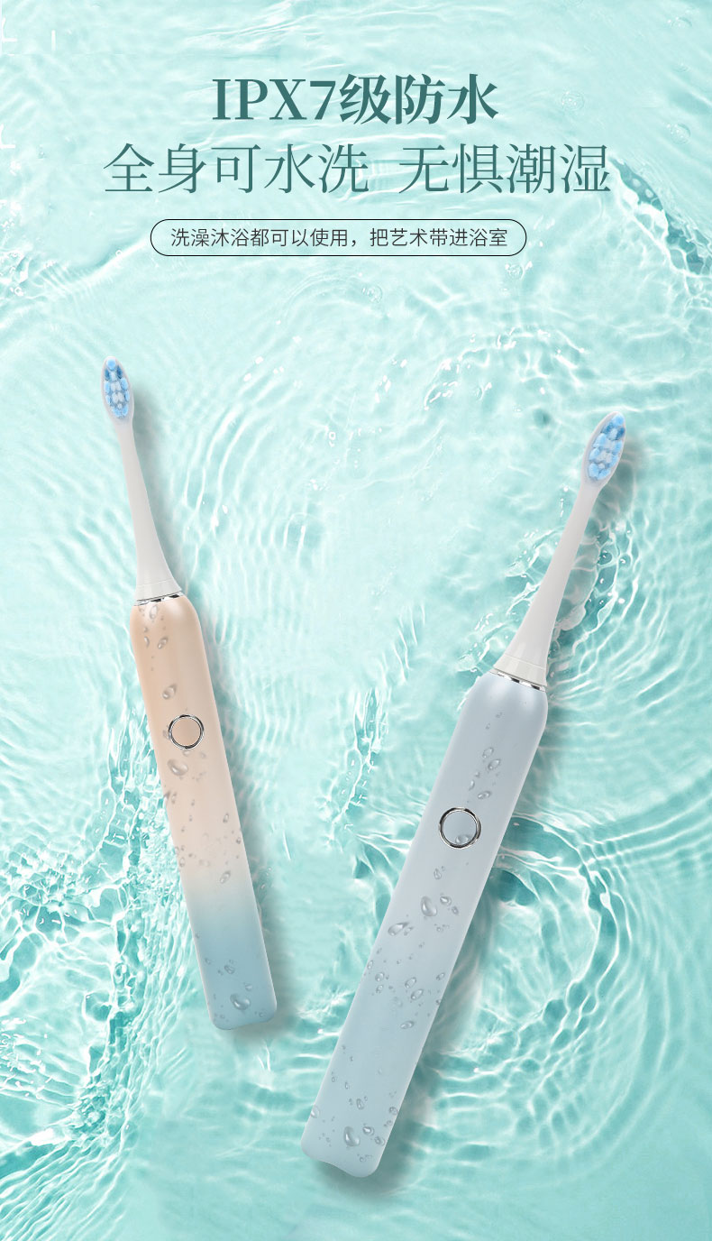 刷博士【聲波智能定時(shí)電動牙刷】是一款聲波潔牙實(shí)力派,皓月白、冷光藍(lán)及睿智黑等多種高顏值色均可選擇;智能定時(shí)功能設(shè)置,每刷滿30秒,震動漸弱提醒換區(qū),2分鐘計(jì)時(shí)器,實(shí)現(xiàn)科學(xué)刷牙2分鐘,從而養(yǎng)成科學(xué)刷牙好習(xí)慣;五大清潔模式,滿足全方位潔齒需求,入門級和資深級電動牙刷者皆可滿足。此外,IPX7級深度防水設(shè)置,聲波智能定時(shí)電動牙刷全身可水洗無懼潮濕、洗澡沐浴都可以使用,把藝術(shù)帶進(jìn)浴室!